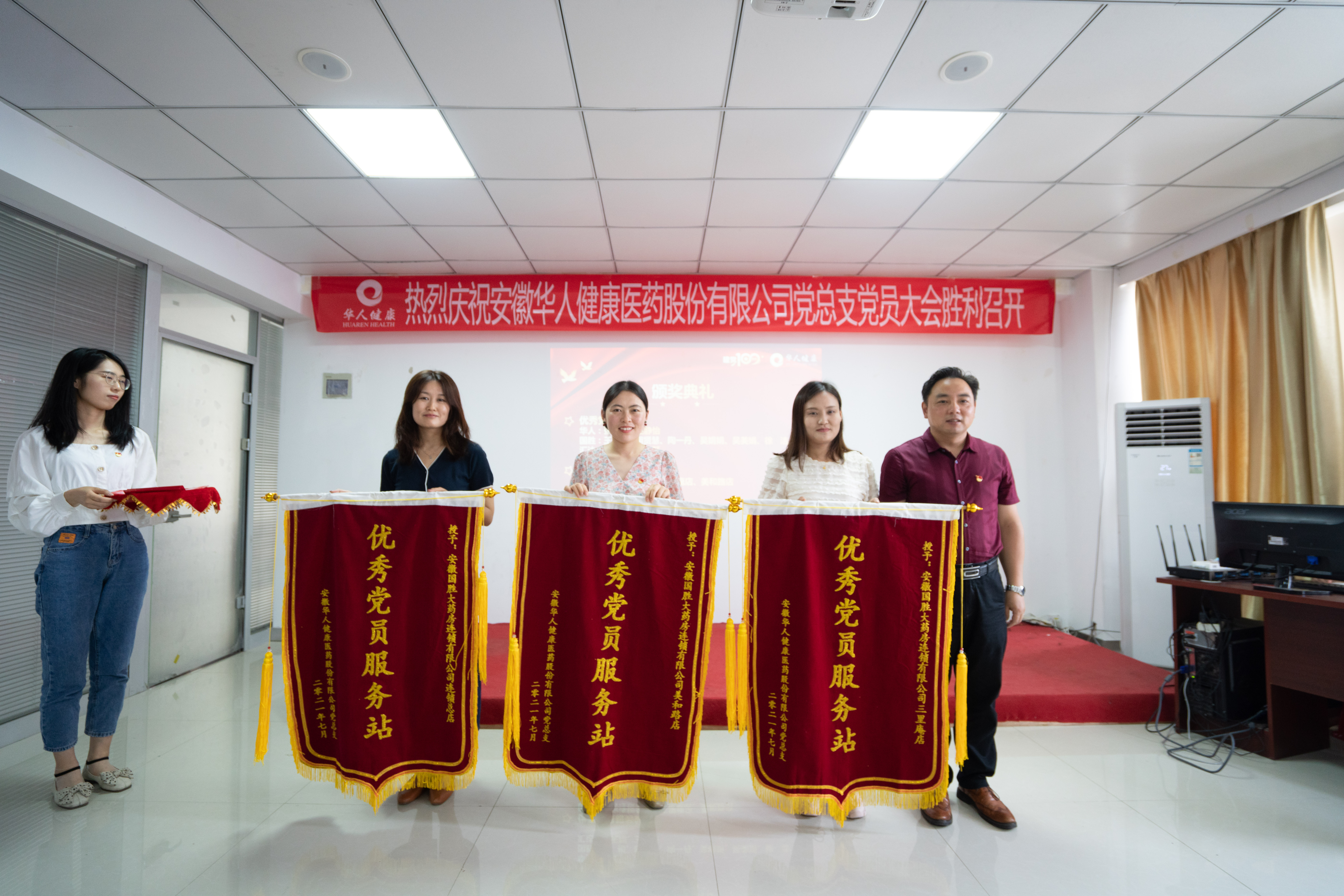 同时在建党100周年的主要时刻,安徽尊龙凯时党总支特授予以张汪节、王彬为代表的10名勇担责、敢立异、乐贡献的党员同志“优异党员”声誉称呼;授予国胜大药房连锁总店、三里庵店、美和路店3家门店“优异党员服务站”声誉称呼;并在会上举行了颁奖仪式。